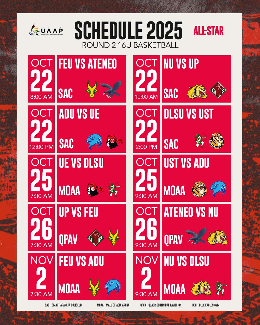 SCHEDULE: UAAP Season 88 Basketball Second Round